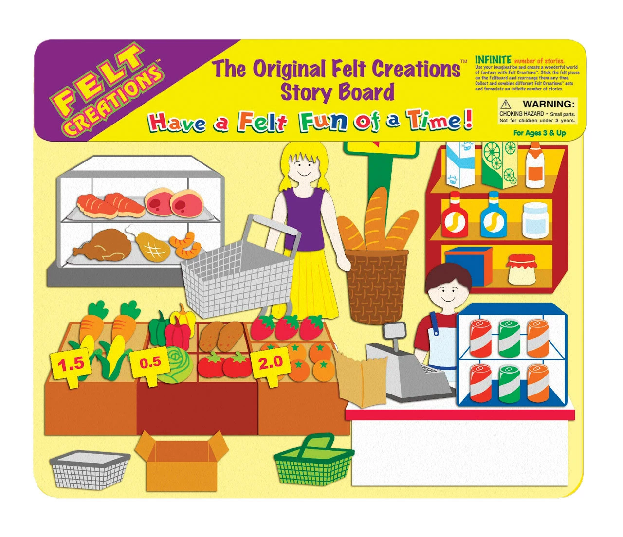 Use your imagination and create a wonderful world of fantasy with Felt Creations. Stick the felt pieces on the feltboard and rearrange them any time. Felt puzzles are non-messy and once a scene is completed, little ones can start all over again. Collect and combine different Felt Creations sets and formulate an infinite number of stories.