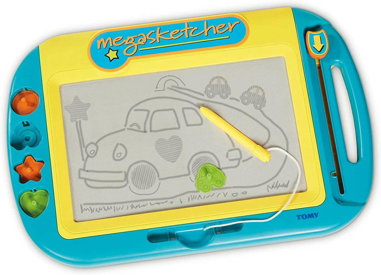 - LARGE MAGNETIC BOARD – Motorised Megasketcher is the new TOMY mess-free doodling tool designed for early drawing skills and creativity development. Giving hours of fun, encouraging and developing your child’s imagination